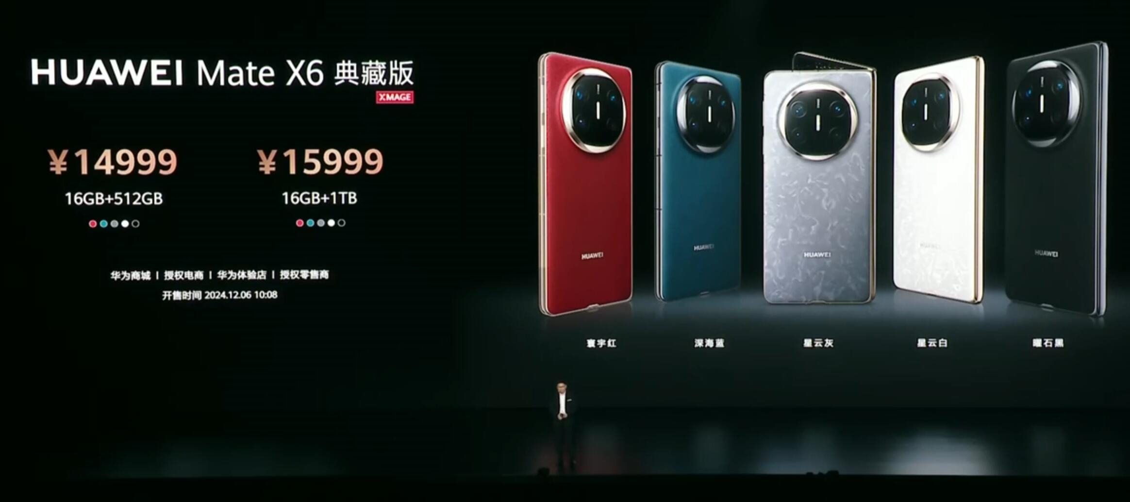 今天下午,华为Mate X6系列正式登场。售价方面,12GB+256GB售价12999元,12GB+512GB售价13999元。华为Mate X6典藏版16GB+512GB售价14999元,16GB+1TB售价15999元。