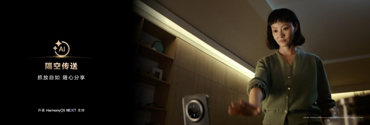 体验方面,Mate 70系列带来全新AI隔空传送,通过AI姿态感应器的手势识别,隔空即可将图片或截图传到另一台设备上,抓放自如、张手就来。
