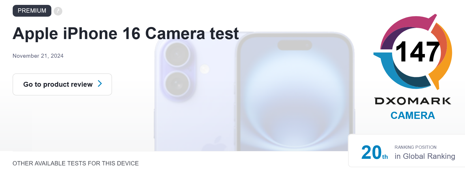 早在九月份,我们就报道过 iPhone 16 Pro Max 在 DXOMARK 的摄像头测试中获得第四名,同时在视频中获得第一名。 然而,标准款 iPhone 16 机型却并非如此。 在 DXOMARK 的最新摄像头测试中,iPhone 16 摄像头在 DXOMARK 的摄像头测试中仅仅排名第 20 位。