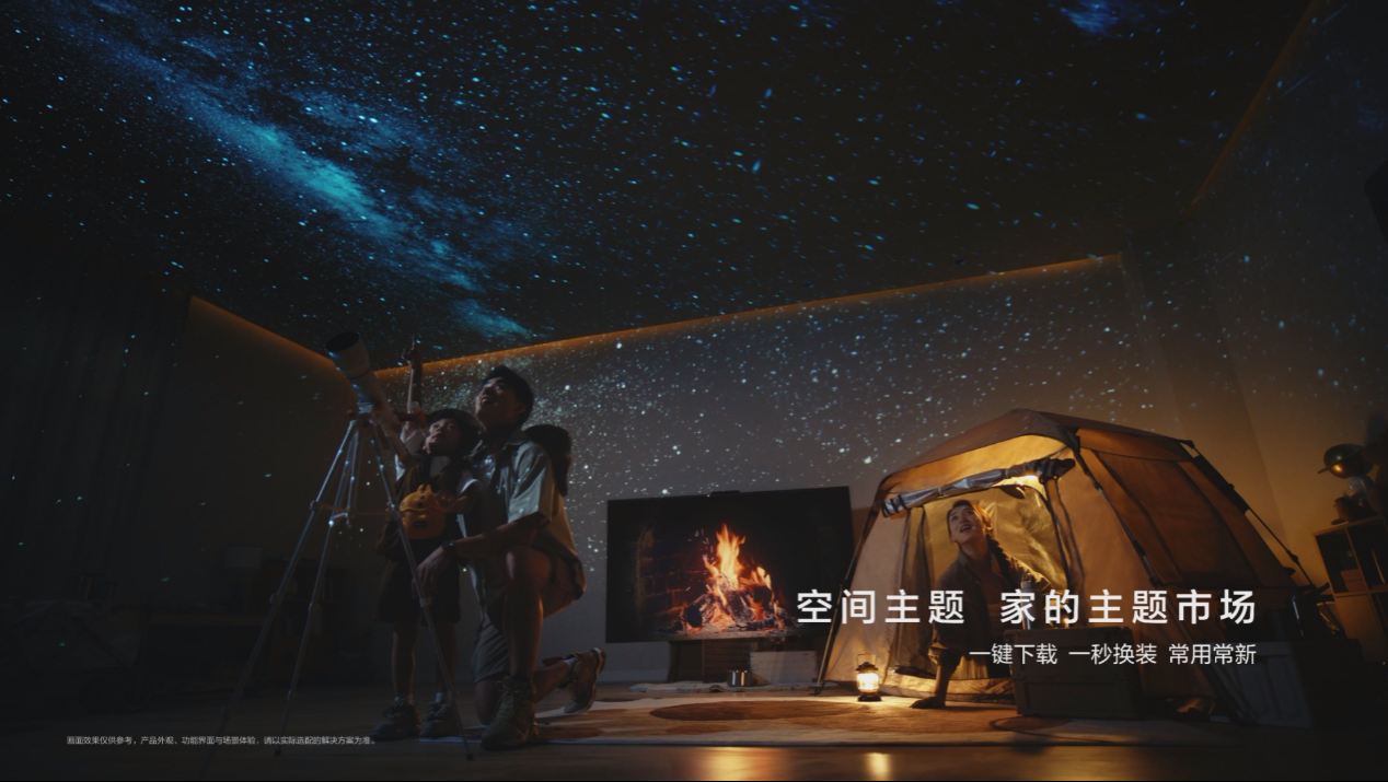 首先,是空间主题。基于鸿蒙系统的底层互联能力,空间主题可以协调灯光、音乐、屏幕显示和窗帘等多种家居设备,用户只需一键下载并应用各种主题包,如围炉小聚、生日派对或梵音放松等,就能瞬间改变家中的氛围。例如,如果你喜欢温馨的聚会氛围,可以选择“围炉小聚”主题;若想为生日派对增添乐趣,可以一键启用“生日主题”;而对于需要放松的时刻,“梵音放松”主题则能帮助你营造宁静的环境。简而言之,空间主题让家也能拥有“主题市场”,轻松实现空间氛围的多样化切换。