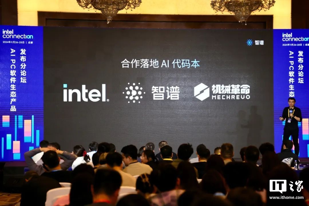 IT之家 11 月 26 日消息,英特尔新质生产力技术生态大会今日在成都举行,英特尔、智谱、机械革命三方联合发布了专为程序员设计的 CODE AI 程序员本。
