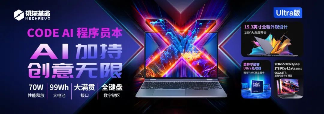 机械革命 CODE AI 程序员本预装智谱 CodeGeeX NANO。这是一款智能编程助手,可以实现代码的生成与补全,自动为代码添加注释等功能,利用 CODE AI 程序员本内的酷睿 Ultra 处理器完全基于本地算力运行。