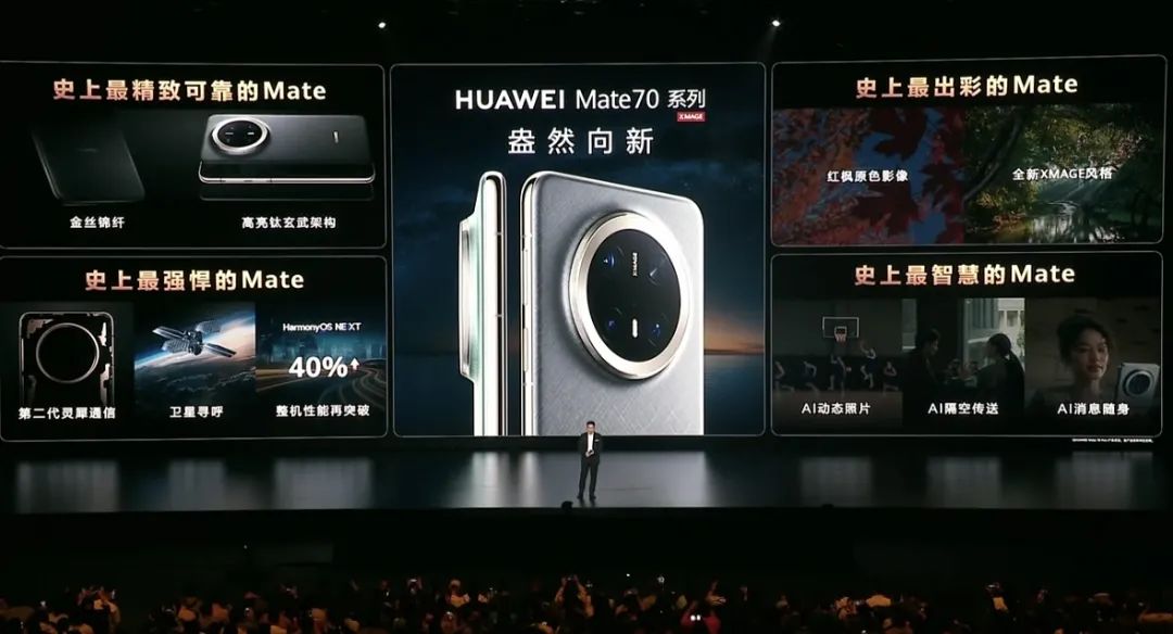 在 Mate70 发布会上,余承东也再次喊话,表示 Mate70 系列无论是在影像、性能还是 AI 体验上,都将会是「史上最强」的一代 Mate 手机,同时还放话称:「能超越华为 Mate 的,只有华为 Mate!」
