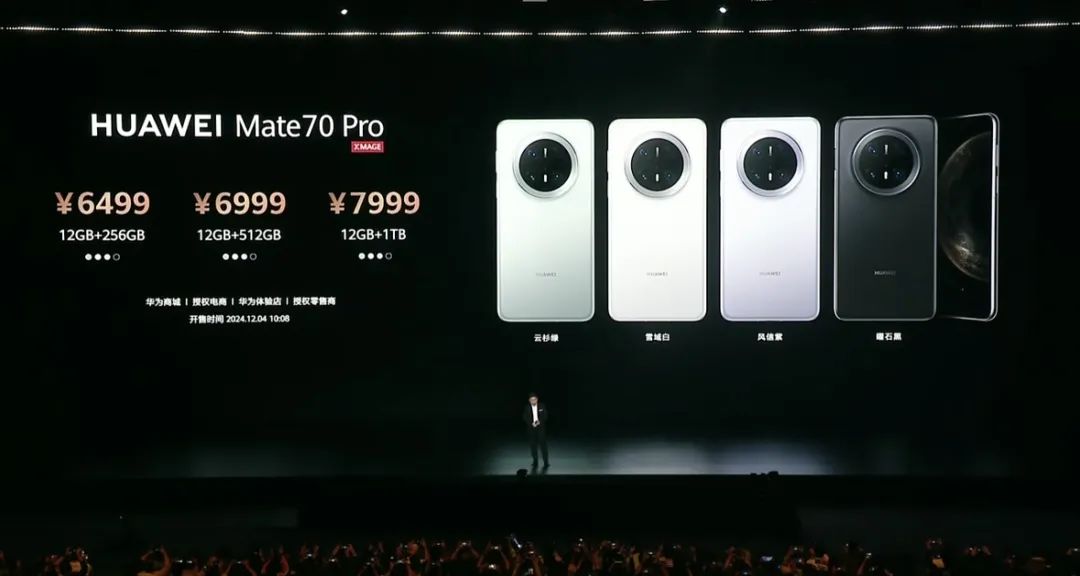 最后是售价部分:华为 Mate 70 售价 5499 元起,华为 Mate 70 Pro 售价 6499 元起,华为 Mate 70 Pro+售价 8499 元起,华为 Mate 70 RS 非凡大师售价 11999 元起,Mate X6 典藏版售价 14999 元起,12 月 4 日 10:08 正式开售。
