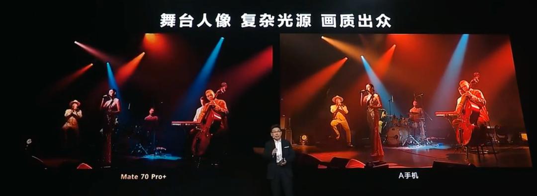 镜头配置上,Mate 70 Pro、Pro+配备5000万像素超聚光主摄+4000万像素超广角+4800像素潜望长焦+红枫原色镜头。在拍摄舞台人像时,能够获取更丰富的色彩和光源细节,从而更好地还原肤色和场景细节。