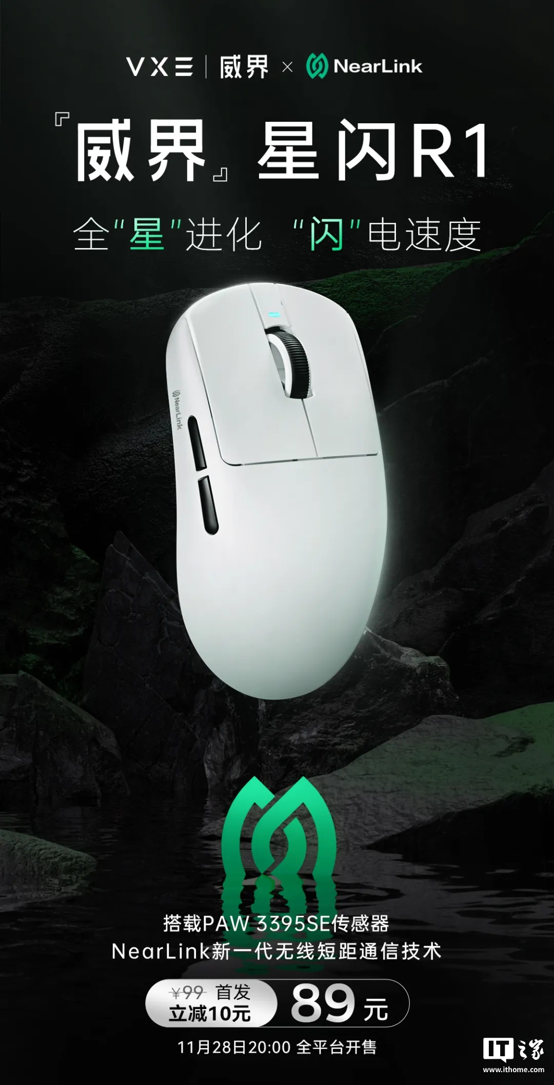 同时官方发布了威界 VXE 星闪 R1 鼠标,将于 11 月 28 日晚 8 点开售,首发 89 元。
