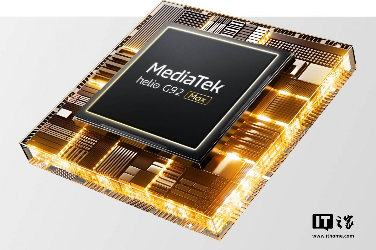 值得一提的是,该机搭载了联发科最新的 Helio G92 Max 芯片,成为全球首款使用该芯片的手机。Helio G92 Max 是一款仅支持 4G 网络的 SoC,被认为是 Helio G91 的升级版。