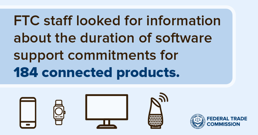 联邦贸易委员会的工作人员发现,在调查的 184 种产品中,有 161 种没有在制造商的网页上披露设备的支持期限或终止日期。 当工作人员在互联网上进行基本搜索以追踪支持期限时,他们没有找到其中 124 种设备的相关信息。