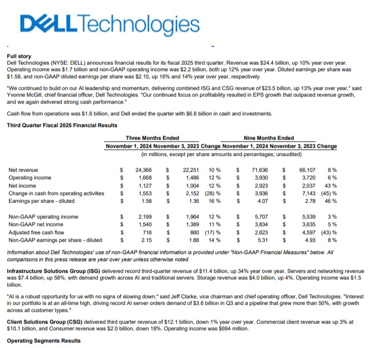 IT之家 11 月 27 日消息,戴尔科技今天公布了最新的 2025 财年第三季度财务业绩: