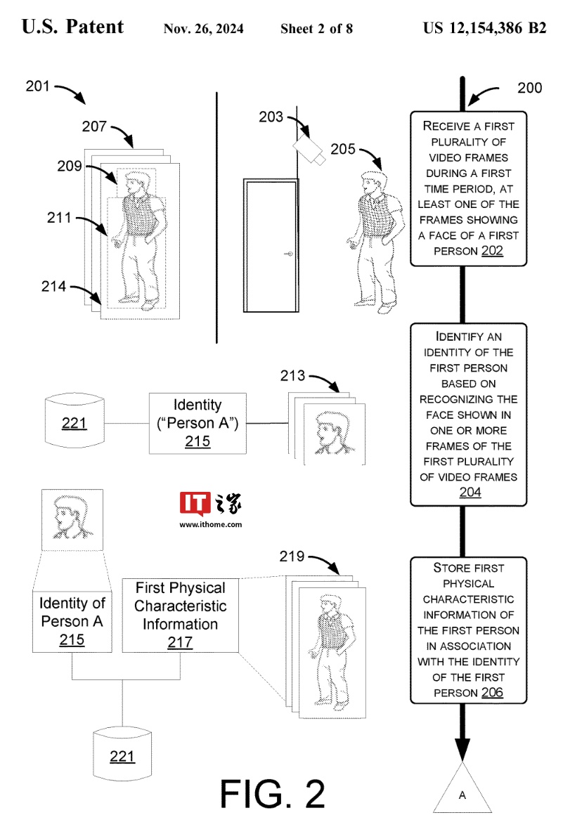 苹果在专利中描述的安全摄像头会率先调用“人脸识别”技术,在识别某人后会记录下关于他们身体的其他特征(包括衣着、步态等),不同特征信息的存储时间长短不一,例如衣着信息存储时间较短,而体型信息存储时间较长。