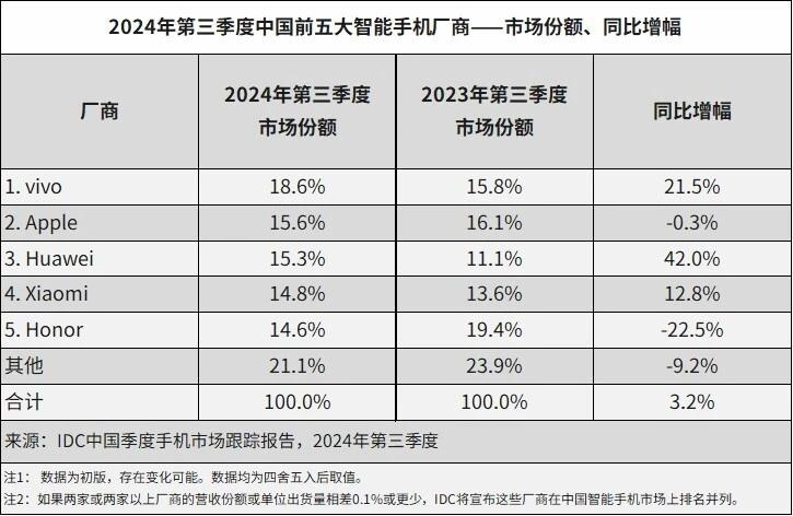 《三季度中国手机市场:vivo蝉联第一,苹果重返前五,华为第三》,观察者网;