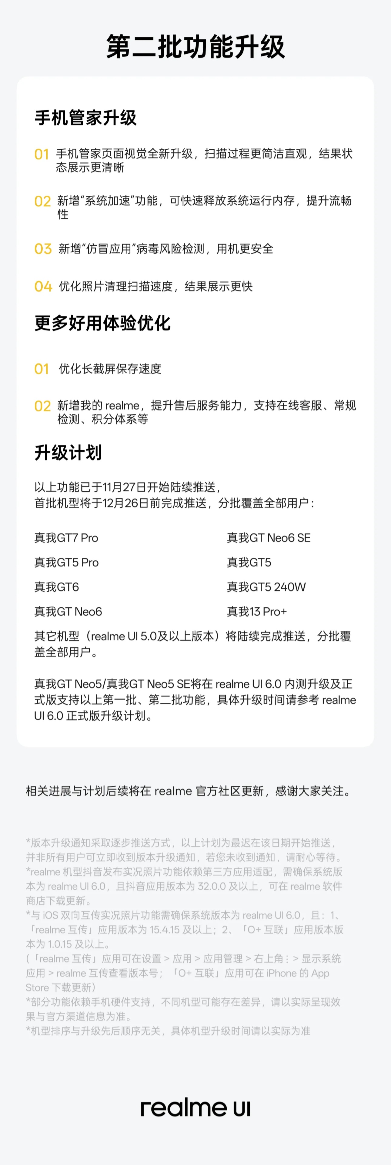 其它机型(realme UI 5.0 及以上版本)将陆续完成推送,分批覆盖全部用户。