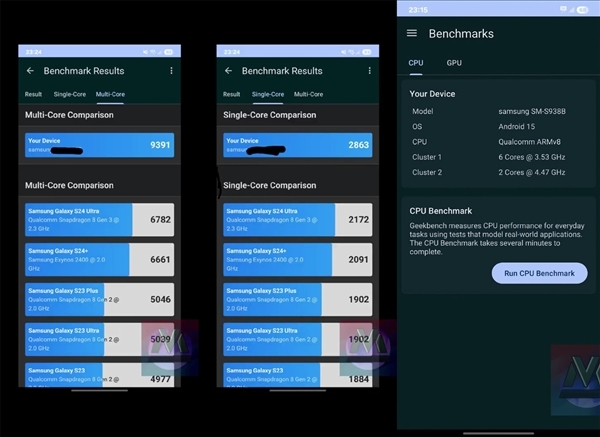 根据GeekBench中的信息显示,三星Galaxy S25 Ultra的两个大核频率达到4.47GHz,相比骁龙8至尊版的4.32GHz高出了0.15GHz,六个小核为3.53GHz,与骁龙8至尊版保持一致。