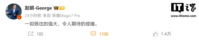 IT之家发现,赵明昨天曾在微博上发文称:“一如既往地强大,令人期待的碰撞”。