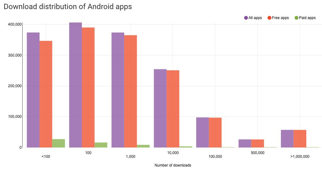 当然,生态内应用数量更多,不一定代表操作系统具备更强的竞争力。AppBrain数据显示,在Google Play中,仅有8.37万个应用的下载量高于50万次,占比仅为4.99%。显然,现如今移动互联网产业存在极为明显的马太效应,大部分用户日常生活中,往往仅会下载使用少数平台型App。
