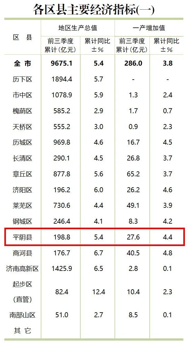 在此之前,平阴以“玫瑰”和“阿胶”闻名,经济体量较小。今年前三季度,济南GDP为9675.1亿元,同比增长5.4%,同期平阴GDP为198.8亿元,在15个区县(功能区)中排名倒数第五。