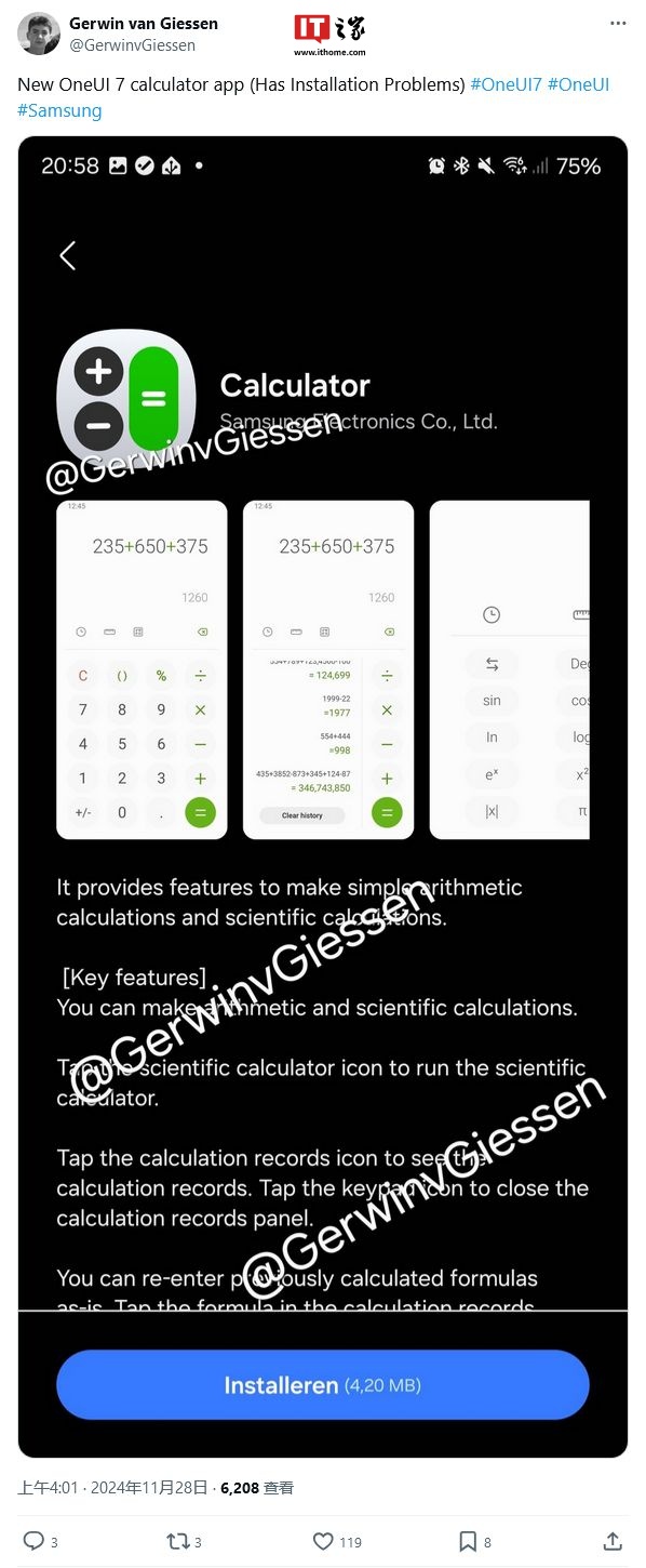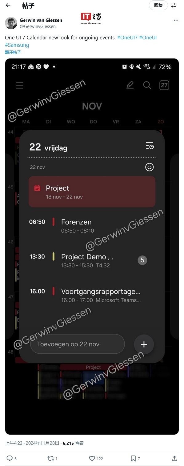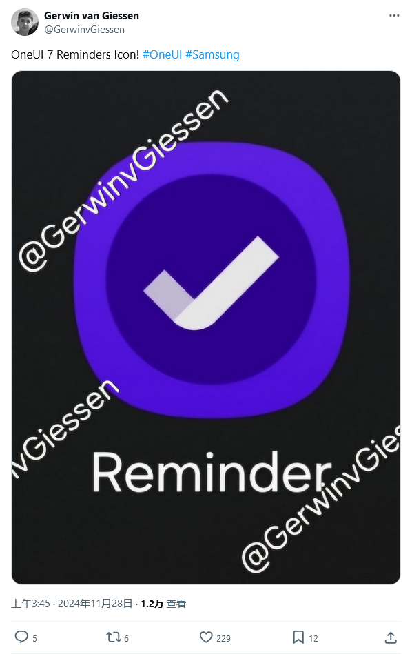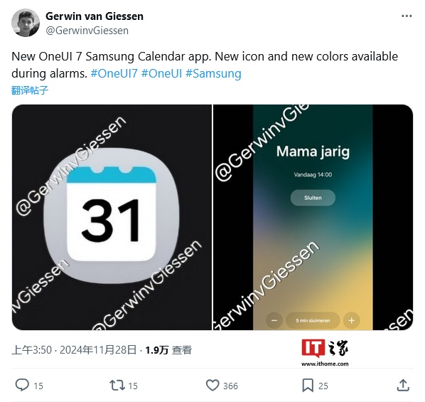IT之家 11 月 28 日消息,消息源 @GerwinvGiessen 今天(11 月 28 日)在 X 平台发布系列推文,分享了多款三星 One UI 7 应用截图,而且还提供了新版三星提醒(Reminder)应用的 APK 安装文件链接。