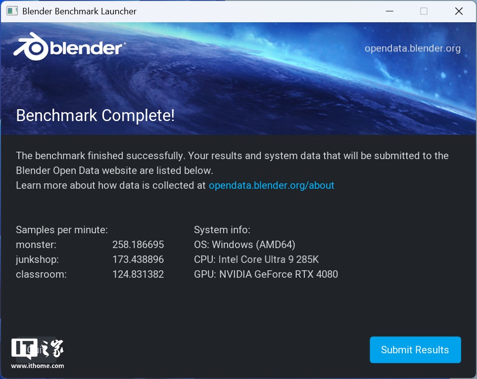 随后我们测试 Blender Benchmark,这个测试主要考察其 3D 模型处理能力,monster、junkshop、classroom 三个场景分别获得了 258、173、125 分。