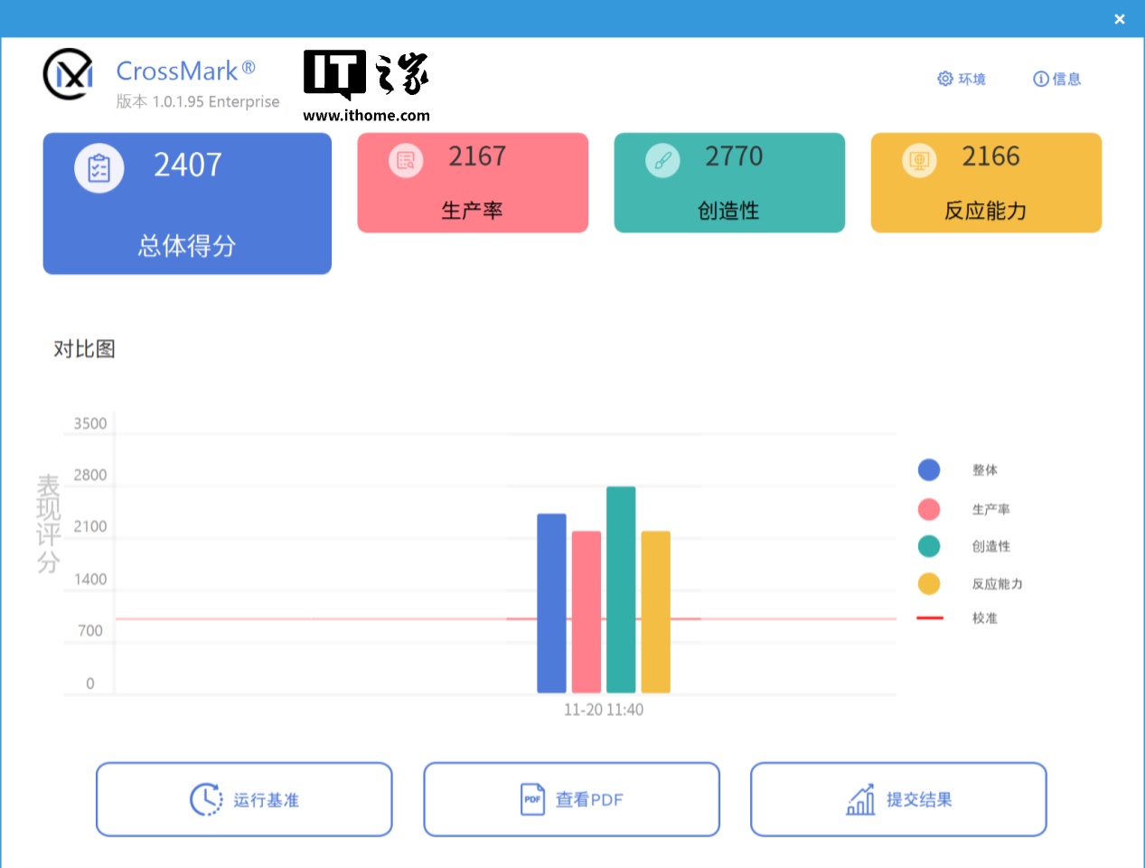 在 CrossMark 中,酷睿 Ultra 9 285K 继续刷新记录,综合成绩达到了 2407 分,创造性得分 2770 分。