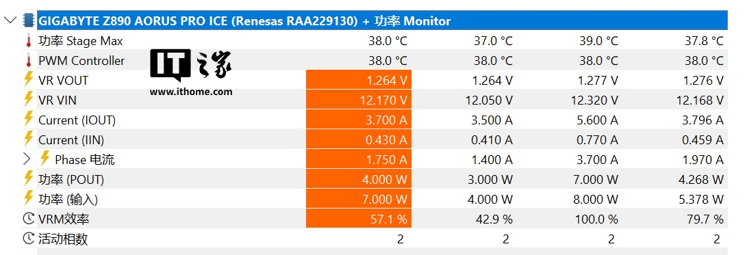 例如,新增了对 CPU Vcore 供电的监控,不仅可以看到总的输出电流和功率,还能看到每项供电的输出情况。