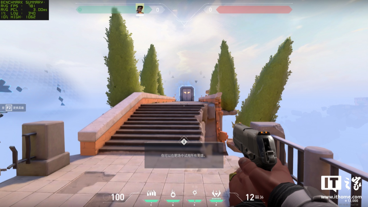 第二款《无畏契约》练习场跑图,1080P 分辨率下平均帧率可达 781FPS。1% Low 帧为 340,开启 NVIDIA Reflex 后平均延迟仅有 3ms。