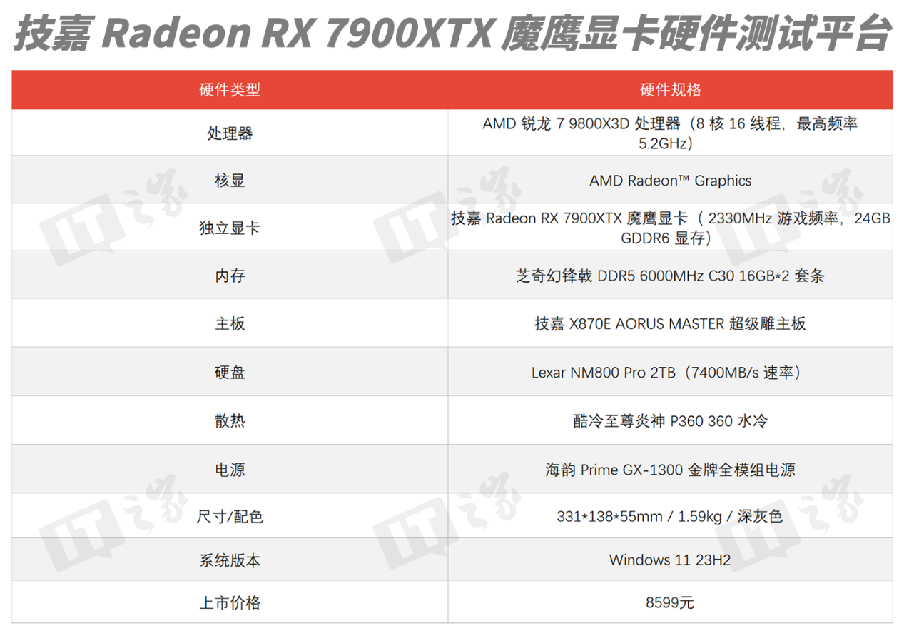 11 月初,AMD 发布了全新一代锐龙 7 9800X3D 游戏处理器,它拥有更强的游戏性能和温度表现,因此很多玩家也开始跃跃欲试,想要装一台畅玩 4K 游戏的电脑主机。说到畅玩 4K 游戏,AMD 旗舰显卡一直是热门选择,比如我们最近拿到的这张技嘉 Radeon RX 7900XTX 魔鹰显卡,它与 9800X3D 搭配起来是否合适,我们一起来看看吧。