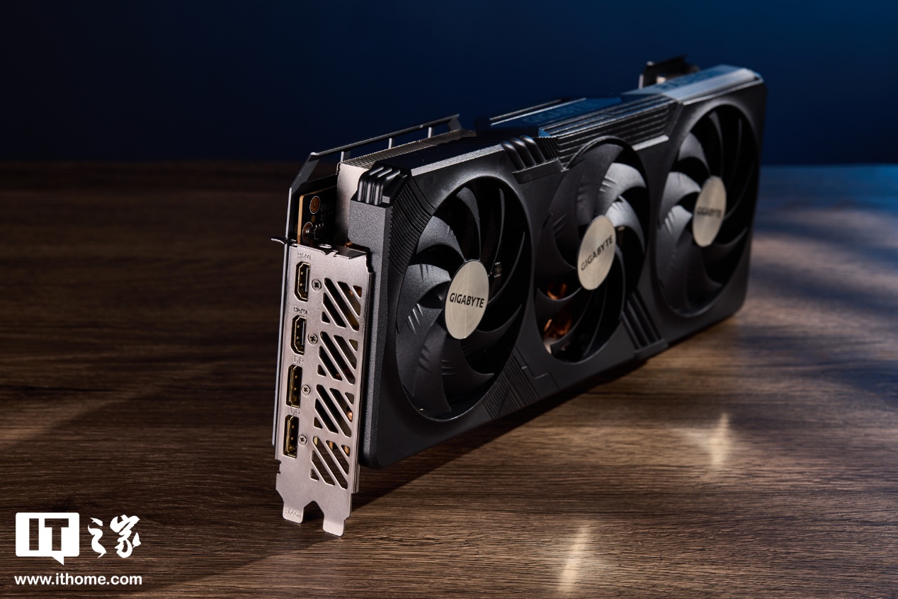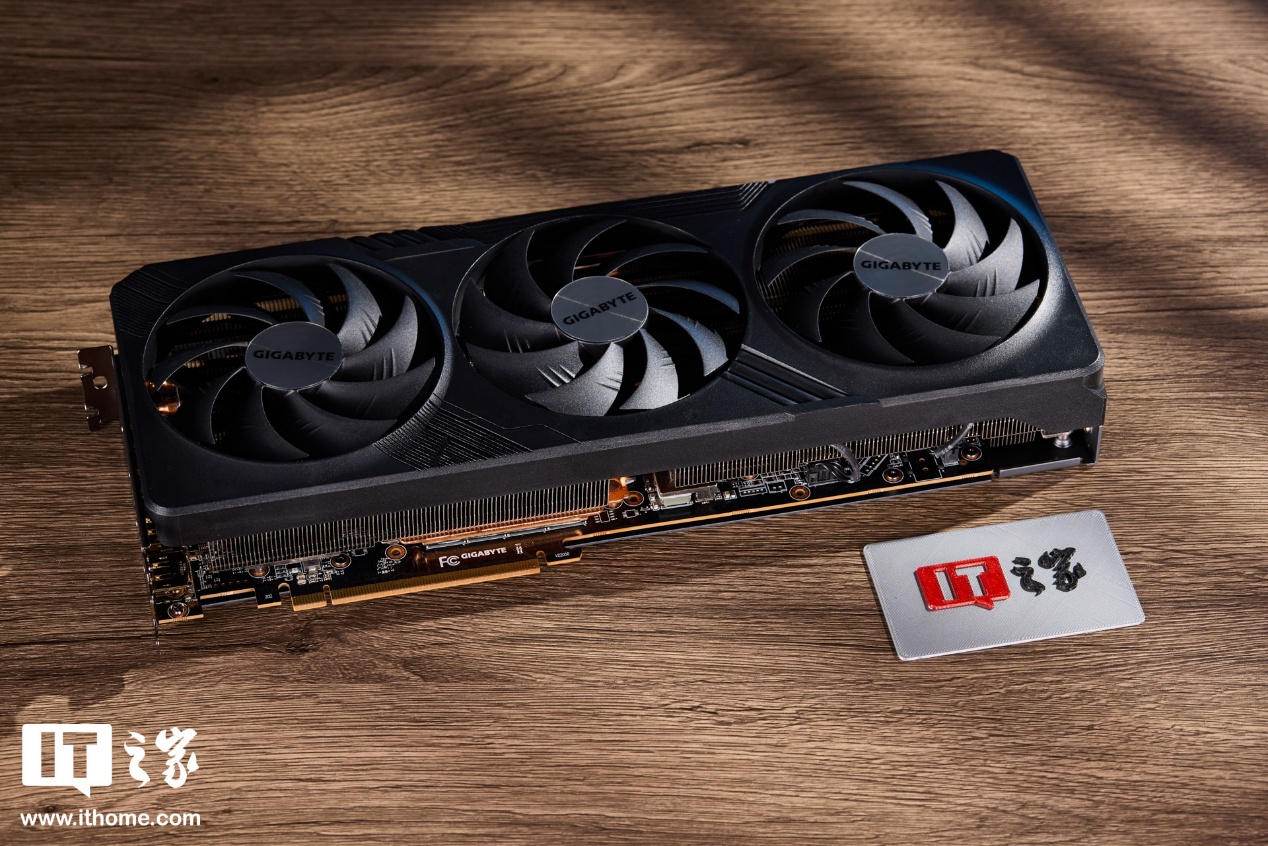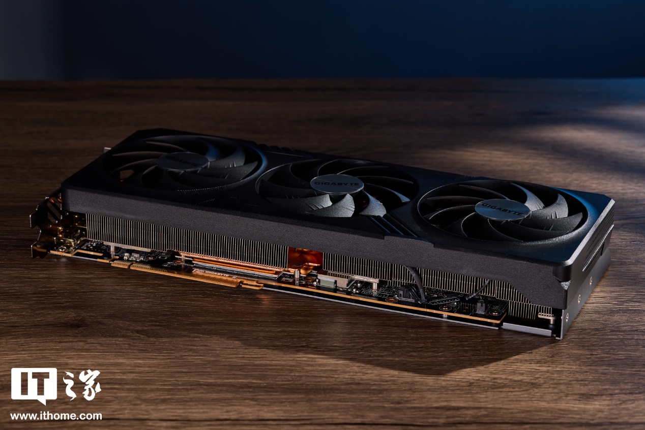 与此同时,技嘉 Radeon RX 7900XTX 魔鹰显卡的外观设计也很有个性,散热用料够足,所以烤机温度也不高。卡身做得相对轻巧,不臃肿也不笨重,全黑化正面处理 + 侧边 RGB Logo 灯牌,既神秘又保留了一丝电竞氛围感。即便在未来较长的一段时间维度里,技嘉 Radeon RX 7900XTX 魔鹰显卡都是一张适合体验 4K 游戏的 AMD 平台卡皇。