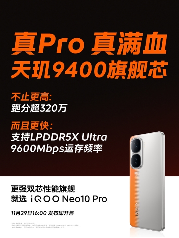 快科技11月28日消息,今日iQOO官宣Neo10 Pro将搭载LPDDR5X Ultra满血内存,速率最高可达到9600Mbps。