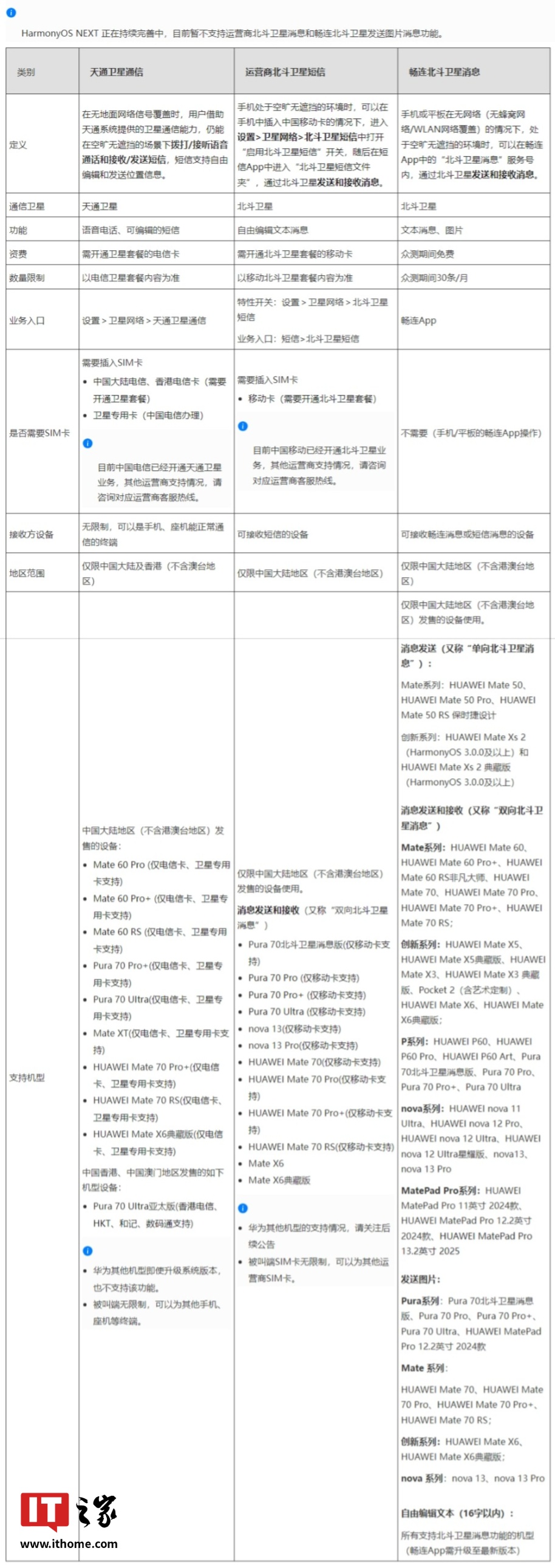 华为官网现更新了各机型卫星功能适配情况,IT之家注意到,自由编辑文本功能已适配所有支持畅连北斗卫星消息的机型。目前畅连北斗卫星消息功能适配情况如下: