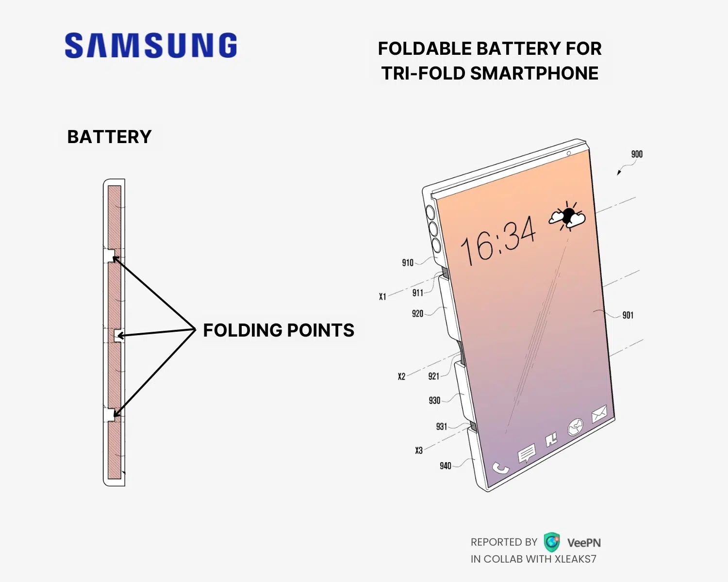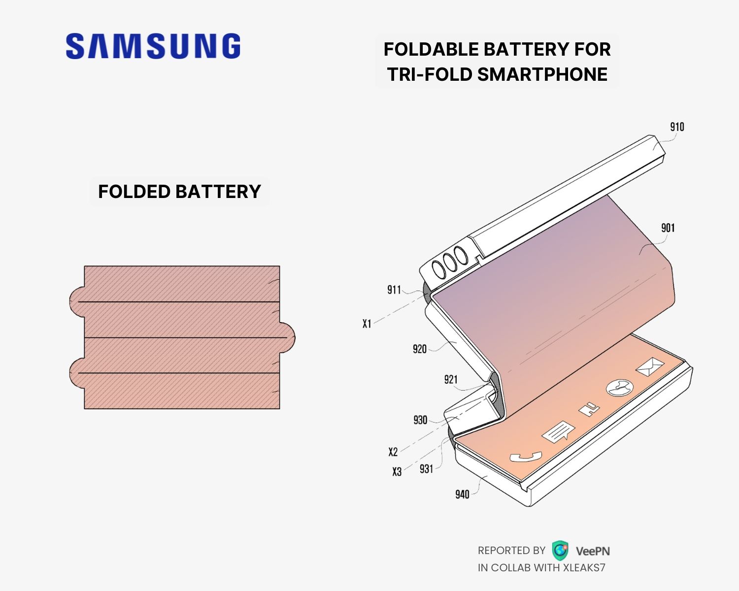 IT之家 11 月 29 日消息,消息源 @xleaks7 昨日(11 月 28 日)在 X 平台发布推文,报道了三星公司获得了一项折叠屏手机专利,有望解决多折叠手机电池续航与机身厚度之间的矛盾,带来轻薄且续航能力更强的折叠手机。
