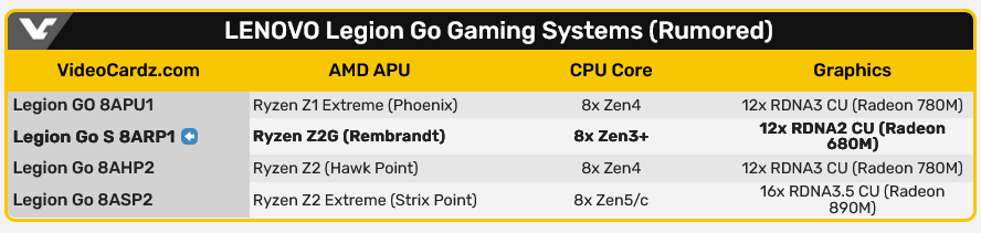 IT之家援引该媒体报道,Ryzen Z2 系列处理器将提供三种配置:Rembrandt(Legion Go S 所用)、Hawk Point 和 Strix Point。