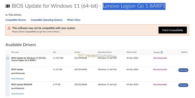 IT之家 11 月 29 日消息,科技媒体 videocardz 昨日(11 月 28 日)发布博文,报道称联想“误发”了 Legion Go S(8ARP1)固件,编译日期为 11 月 4 日,进一步表明该游戏掌机搭载 AMD Rembrandt APU。
