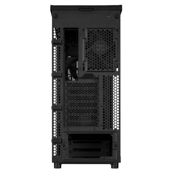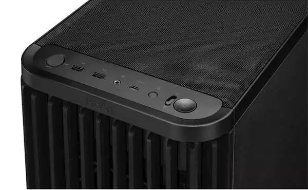 华硕 ProArt PA401 机箱采用下置电源仓结构,前方为透风格栅,后部拥有 7 条 PCI(e) 扩展槽,上方为 MESH 网孔面板,相较 PA602 取消了顶部左右两侧的提手设计。其前置 I/O 面板中包含 2 个 USB-A 接口、1 个 USB-C 接口,最右侧电源键的左边为防猫锁。
