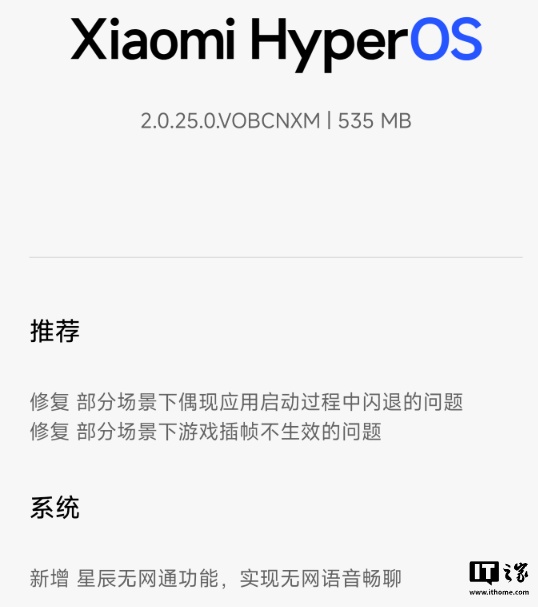 IT之家 11 月 29 日消息,小米 15 系列手机澎湃 OS2 正式版内测现已推送,版本号为 2.0.25.0.VOBCNXM,安装包大小为 535MB。