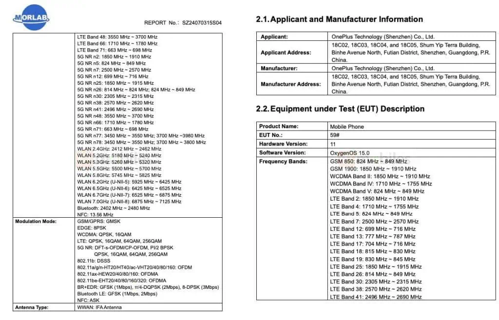 根据认证文件,一加 Ace 5 海外版支持 5G 网络连接,Wi-Fi 7(802.11 a / b / g / n / ac / ax / be)和蓝牙 5.4。