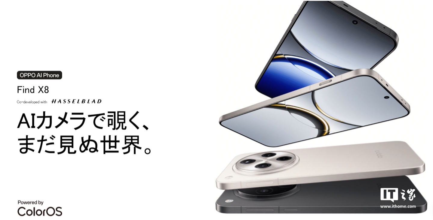 IT之家查询获悉,OPPO Find X8 在日本仅有 16GB+512GB 版本可选,颜色则有太空黑(スペースブラック,国内对应星野黑)与星灰色(スターグレー,国内暂无该配色)两种可选。