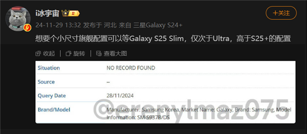 快科技11月29日消息,据知名数码博主@i冰宇宙透露,明年的三星手机将推出一款小屏旗舰——S25 Slim,定位在S25+之上,仅次于Ultra版本。