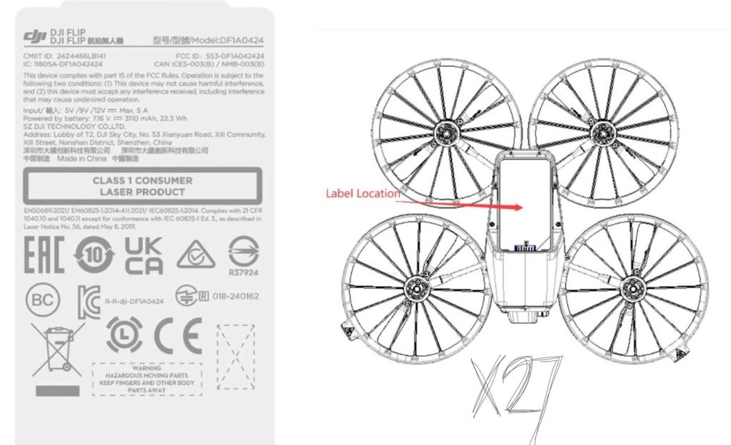 目前已知“DJI Flip”的技术规格包括:7.16V / 3110 mAh (22.3 Wh) 电池和涵道螺旋桨设计,涵道螺旋桨设计提升了安全性,可能使其更适合室内飞行和专业检测任务。