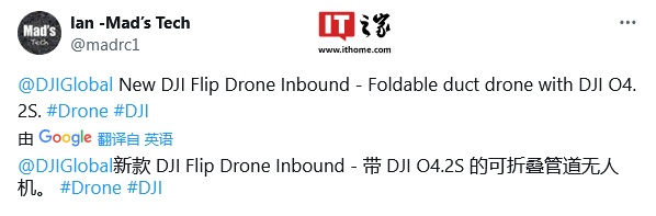 IT之家 11 月 30 日消息,贾斯珀・埃伦斯(Jasper Ellens)等多家消息源曝料,大疆正酝酿名为“DJI Flip”的全新折叠无人机,将配备大疆 O4 图传系统。