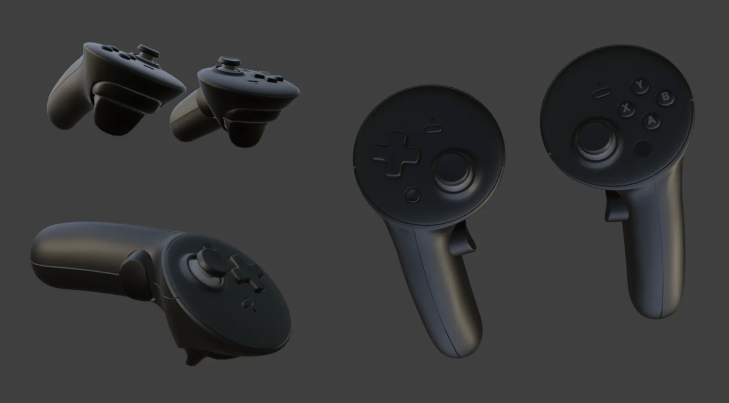 值得一提的是,相关手柄 3D 模型甚至包含手柄在不同研发阶段的设计,目前最新版本手柄外形类似 Meta 的竞品,去掉了环形检测传感器。
