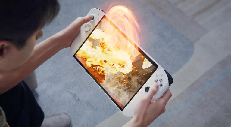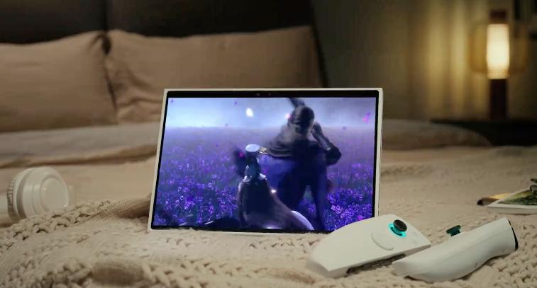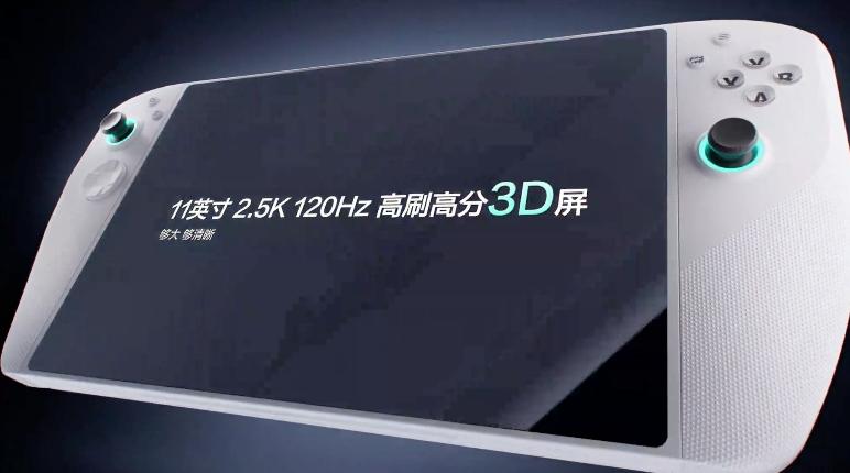 这是一款以裸眼 3D 游戏为卖点的掌机,而且屏幕达到了 11 英寸,加上手柄,握持尺寸将达到 12.4 英寸平板级别。
