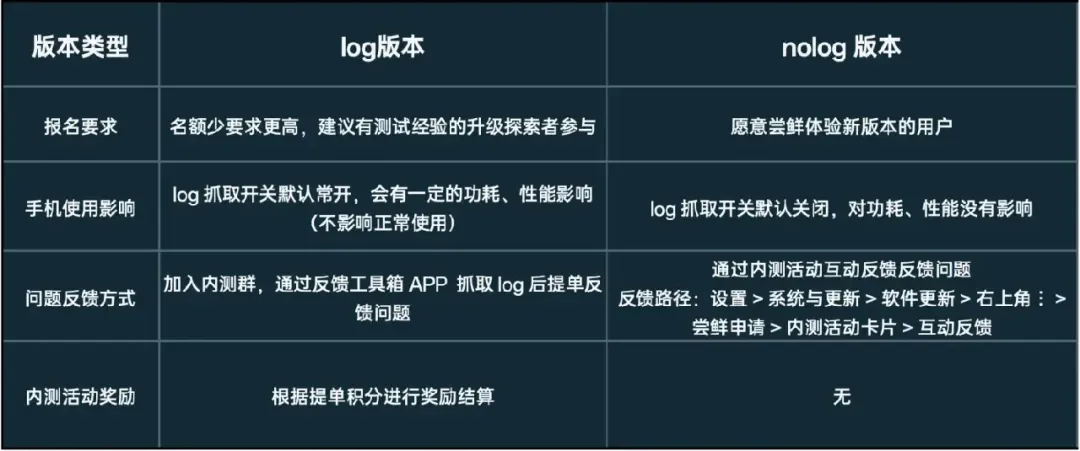 版本推送时间:log 版本:12 月 5 日;nolog 版本:12 月 6 日