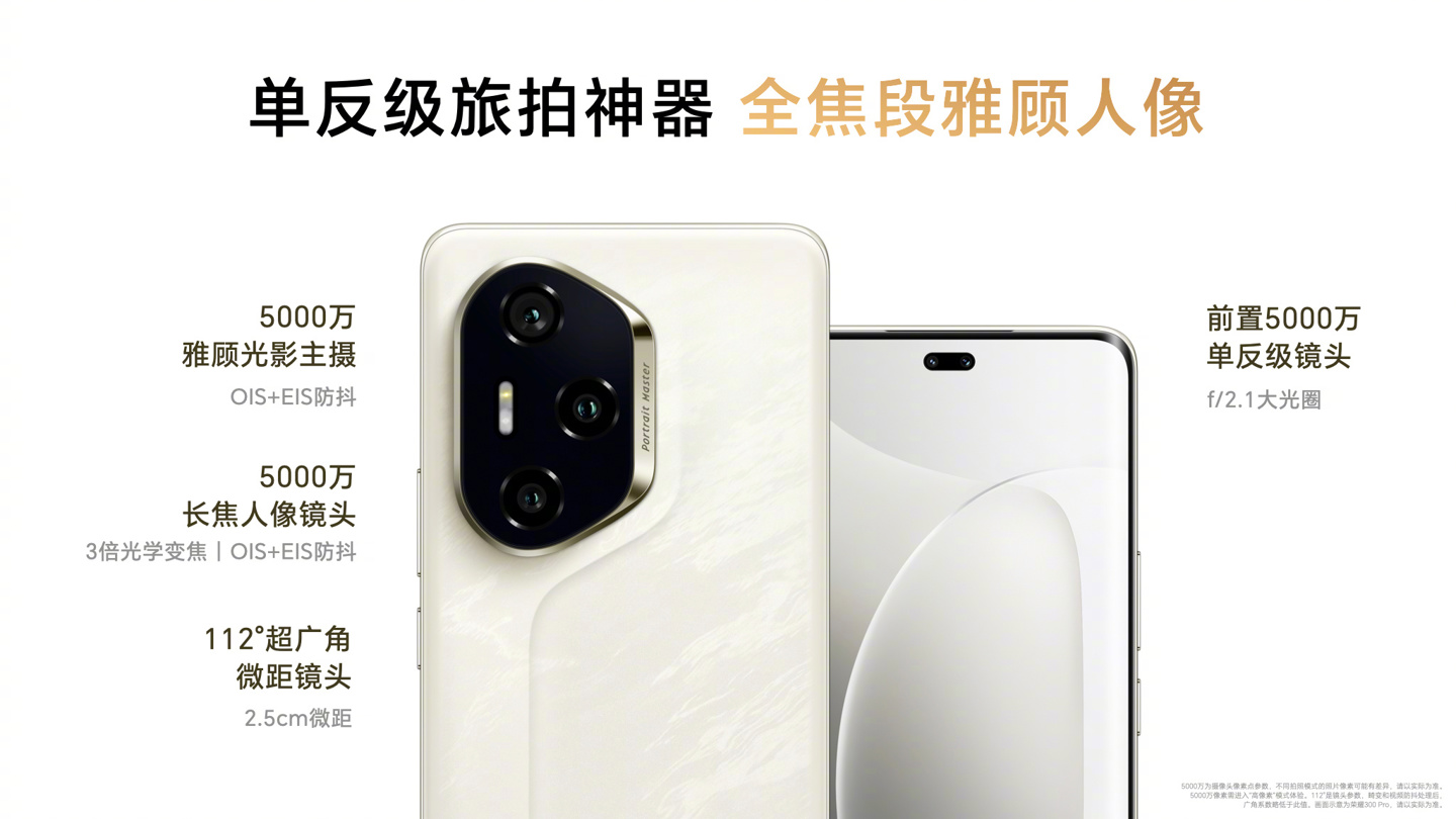 IT之家早些时候报道,荣耀 300 Pro 搭载 5000 万像素雅顾光影主摄、5000 万像素长焦人像镜头、112° 超广角微距镜头和 5000 万像素前置镜头。