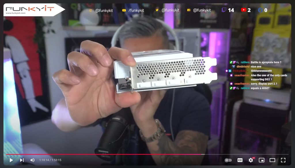 根据消息源分享的视频(截至IT之家发文前,已被删除),该显卡配备了大型铝制双鳍片堆叠散热器和三个风扇,金属双色调的散热器护罩,PCB 长度约为显卡总长度的一半,近一半的散热器气流会穿过显卡并从背板的大型切口排出。