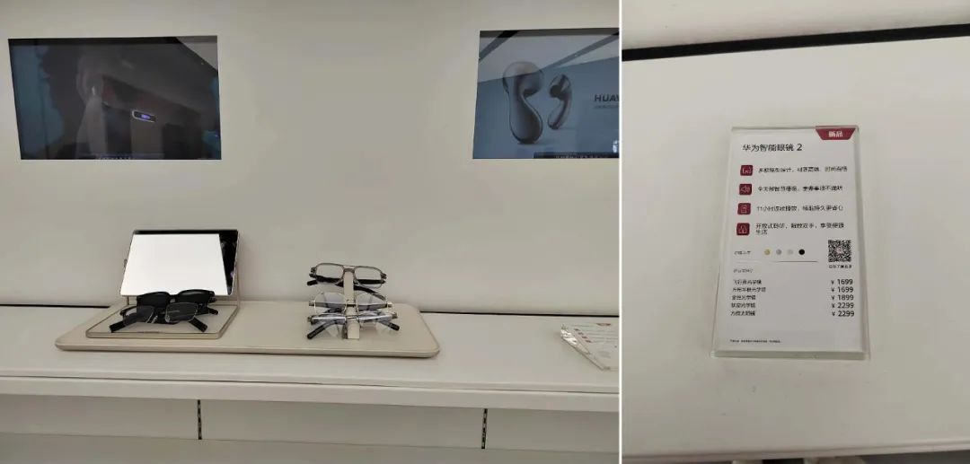 北京某商场展示的华为智能眼镜2(共五款,价格在1699-2299元不等) 「定焦One」摄