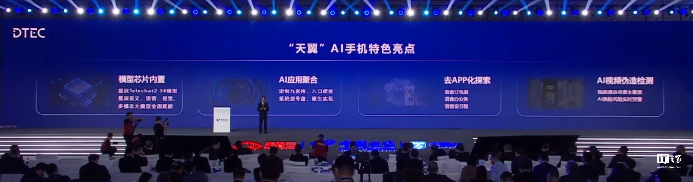 IT之家 12 月 3 日消息,在今日的 2024 数字科技生态大会上,中国电信官宣推出“天翼”AI 手机。