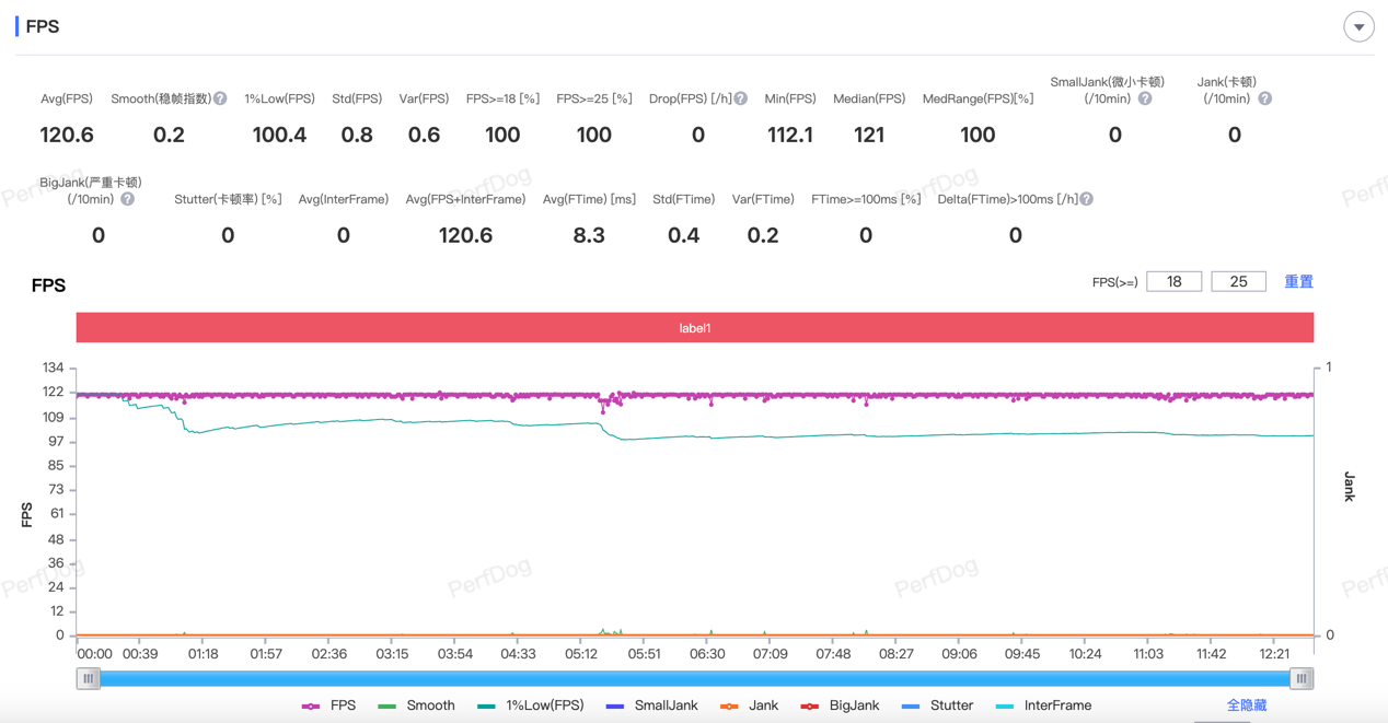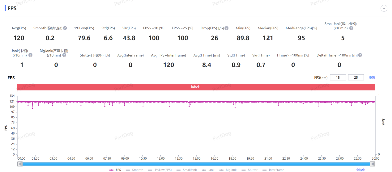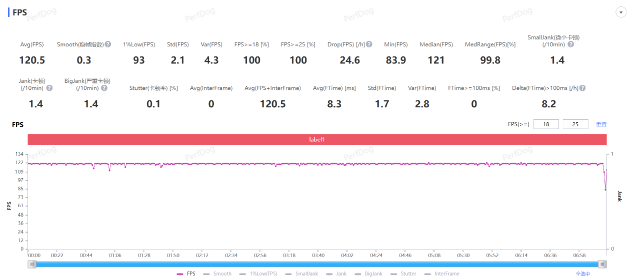 去除一局超短时间对局,其余 5 局的游戏平均帧数基本都是 120 帧,表现非常稳定。