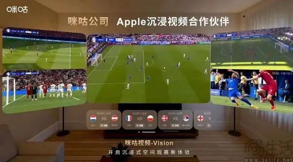 以VR的方式让用户足不出户就能体验到现场看球的效果,这就是Vision Pro“现场看球”业务的精髓。事实上早在2022年的卡塔尔世界杯上,VR已经被应用在直播中,以咪咕视频为代表的全球多家转播商都向用户提供了"VR巨幕"选项,使得用户可以与现场的球迷一样,从全场任意角度观看球赛。