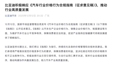 比亚迪:积极响应《汽车行业价格行为合规指南(征求意见稿)》,推动行业高质量发展