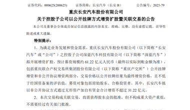 长安汽车:控股子公司深蓝汽车拟增资扩股 募资规模约61.22亿元